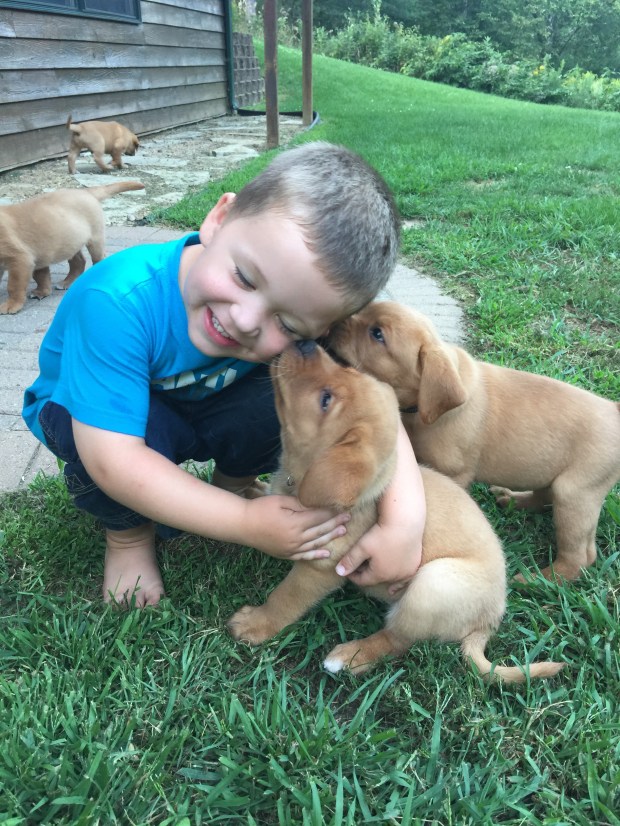 Last night the Grand kids came over to play and say goodbye to the 11 puppies. It was bittersweet, but they know they are going to good homes this weekend.We do still have 2 males still looking for their forever homes. If you would love for one of these guys to be apart of your family, give us a call 715-554-4822 *All puppies from this litter have found their forever homes. Please check out our Puppies for Sale page for current and upcoming puppies for sale*