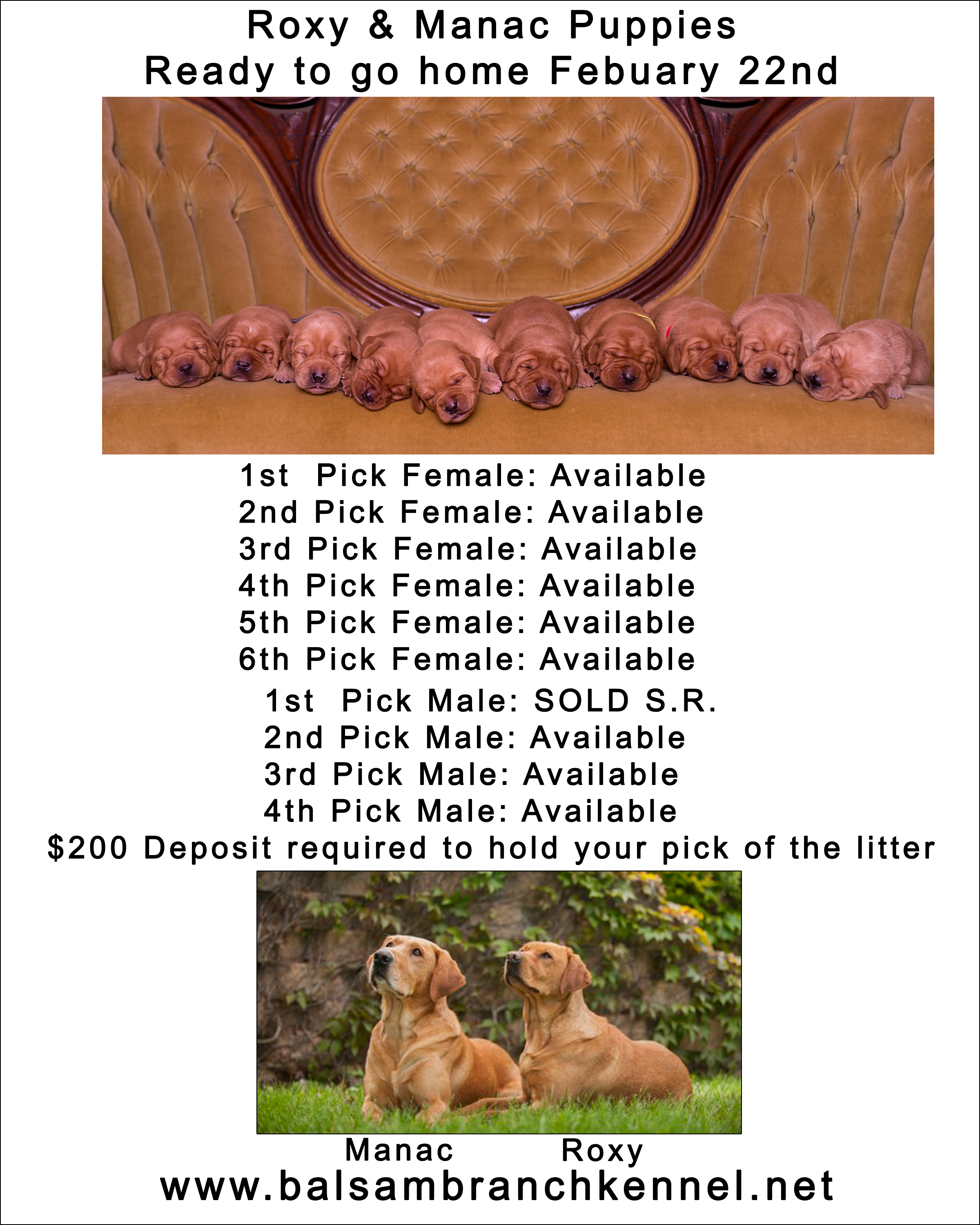 Roxy & Manac fox red labs puppies for sale Previous Next Published January 14, 2020 at 2400 × 3000 in Pictures of our Puppies Like Loading...