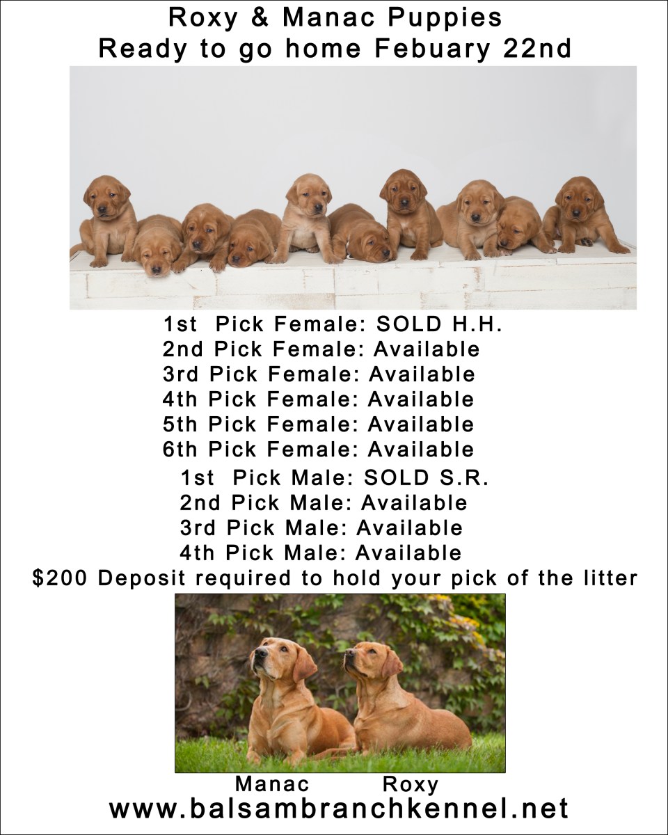 Roxy & Manac fox red labs puppies for sale Previous Next Published January 24, 2020 at 2400 × 3000 in Pictures of our Puppies Like Loading...