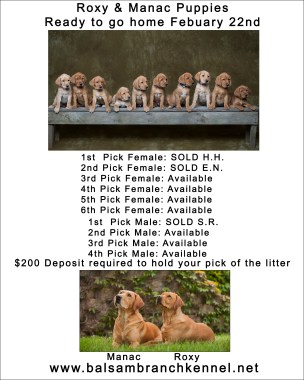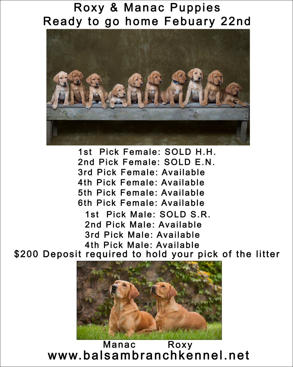 Roxy & Manac fox red labs puppies for sale Previous Next Published February 18, 2020 at 2400 × 3000 in Pictures of our Puppies Like Loading...